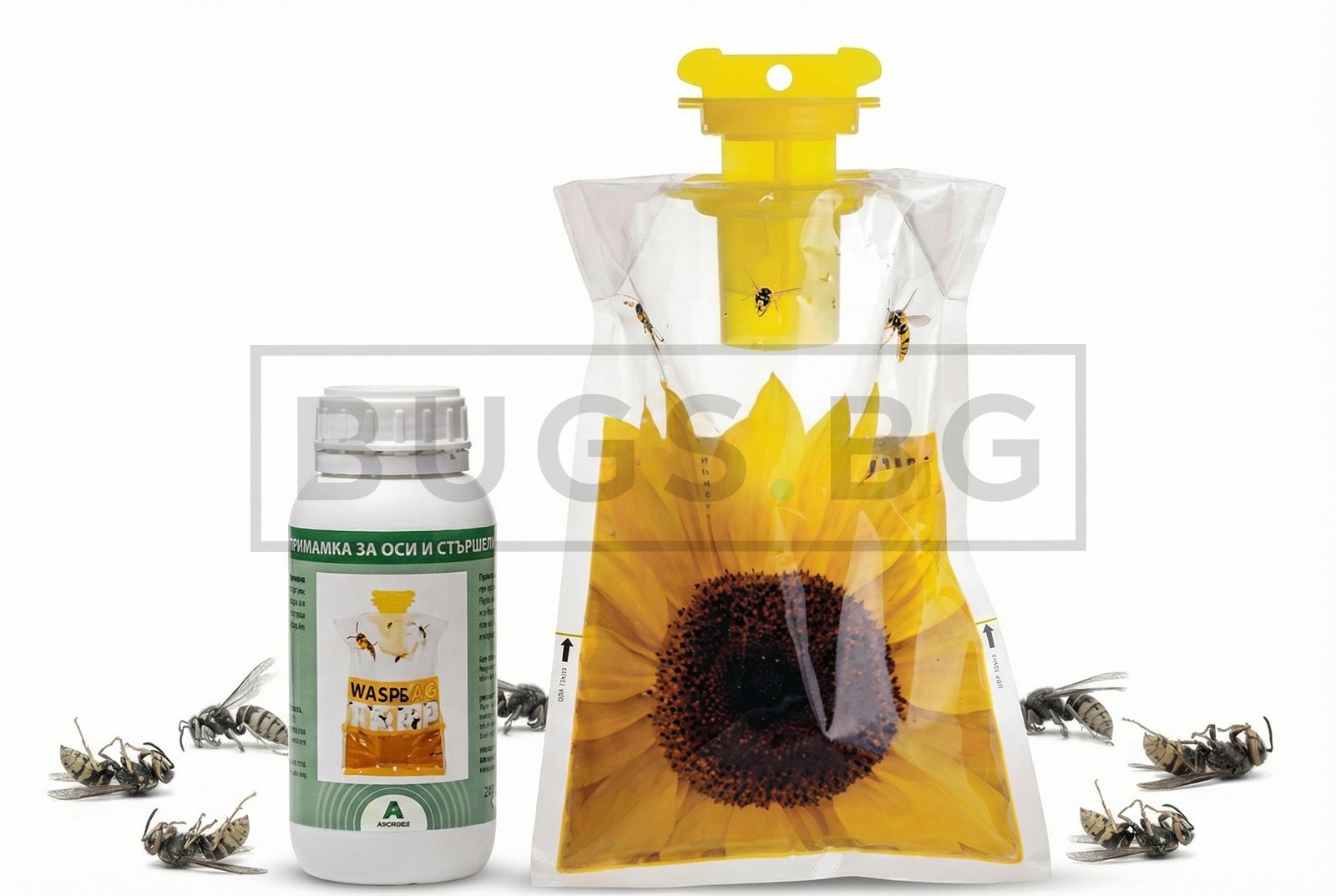 Атрактантът привлича осите и стършелите в капана, а конструкцията ги задържа вътре, като така намалява броя им около хората и рисковете от ужилване.