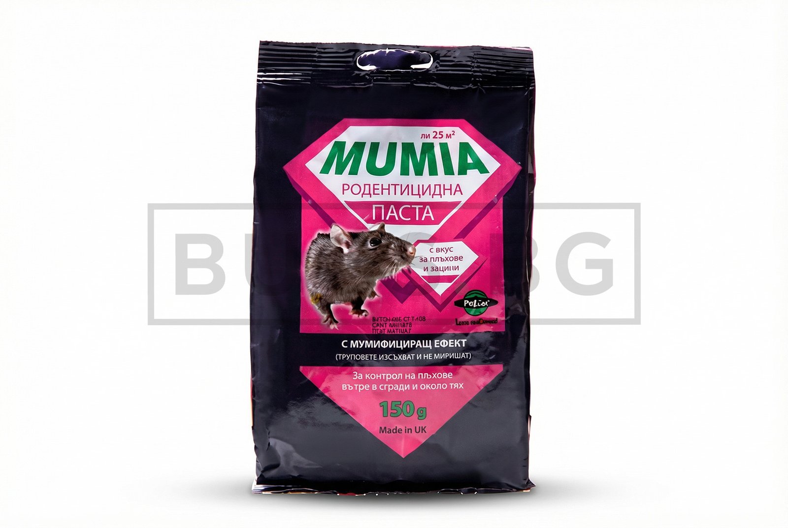 Мумия е готова за употреба родентицидна примамка под формата на свежа паста за контрол на домашна мишка и сив плъх. Примамката се поставя в дератизационни кутии и се използва като част от интегриран контрол на вредителите.